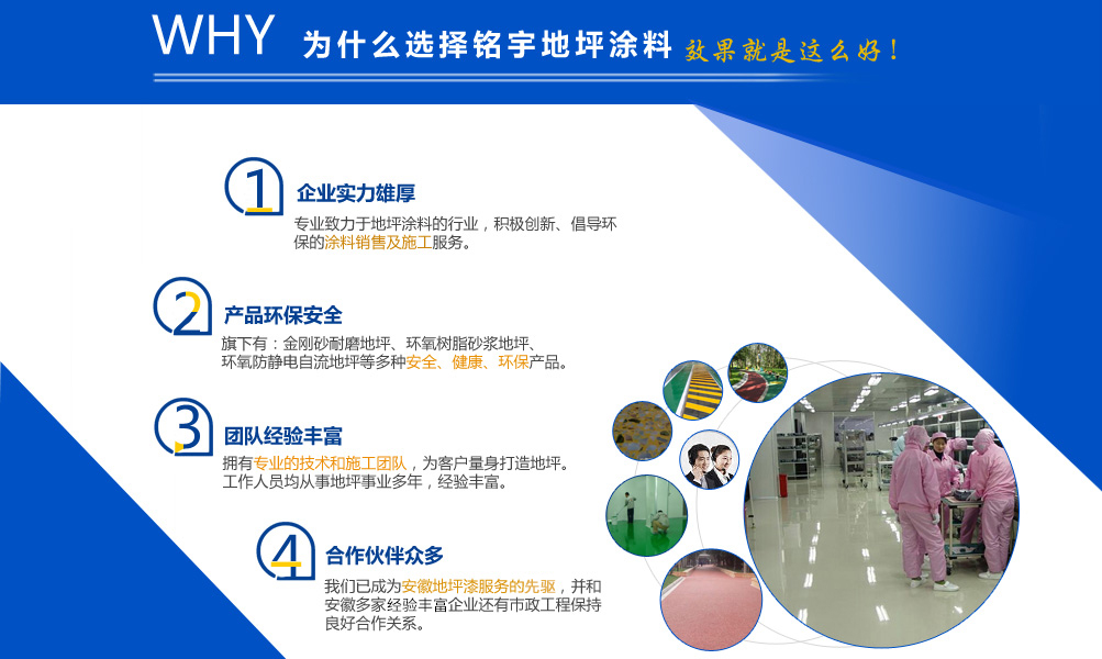 安徽銘宇建材科技有限公司是一家致力于地坪涂料的行業(yè),旗下有金剛砂耐磨地坪,環(huán)氧樹脂砂漿地坪,環(huán)氧防靜電自流地坪,停車場防滑地坪,混凝土密封固化劑和丙烯酸球場,無震動止滑車道、塑膠跑道、工廠地板漆等工程施工服務(wù)。 憑借本身的技術(shù)能力和研發(fā)條件,加上多年對環(huán)氧地坪和耐磨硬化地坪等各類工業(yè)地坪的涂裝、施工的實踐經(jīng)驗、技術(shù)己處于國內(nèi)專業(yè)水平,經(jīng)檢測機(jī)構(gòu)檢驗符合相應(yīng)的技術(shù)標(biāo)準(zhǔn)。同時安徽銘宇建材科技有限公司還組建了經(jīng)驗豐富的工程技術(shù)隊伍以及工程施工隊伍、簡歷了完善的售后施工服務(wù)體系,滿足用戶的需要。 安徽銘宇建材科技有限公司是一家積極創(chuàng)新、倡導(dǎo)環(huán)保的涂料銷售及施工服務(wù)的廠家,安徽銘宇建材科技有限...
